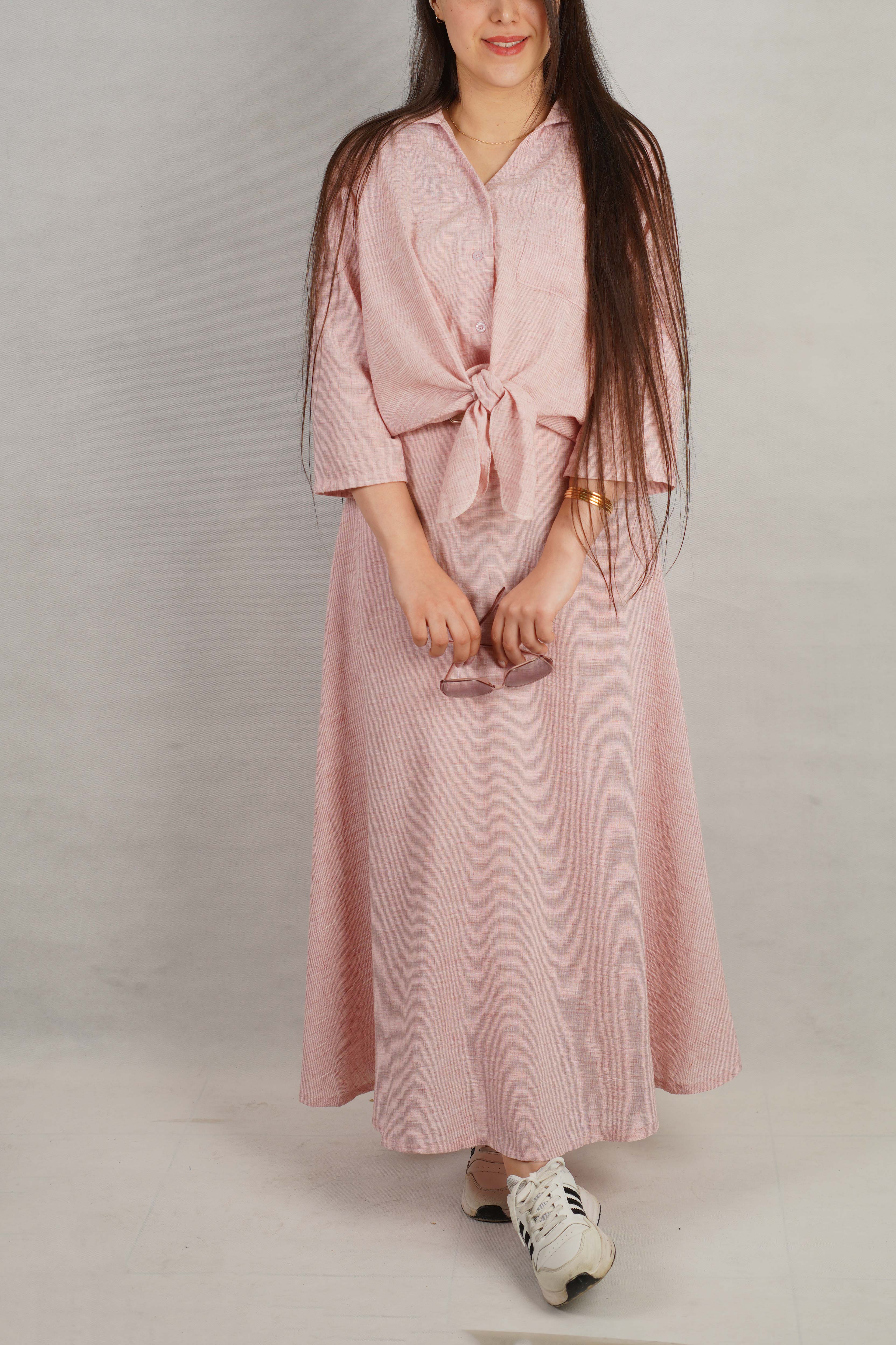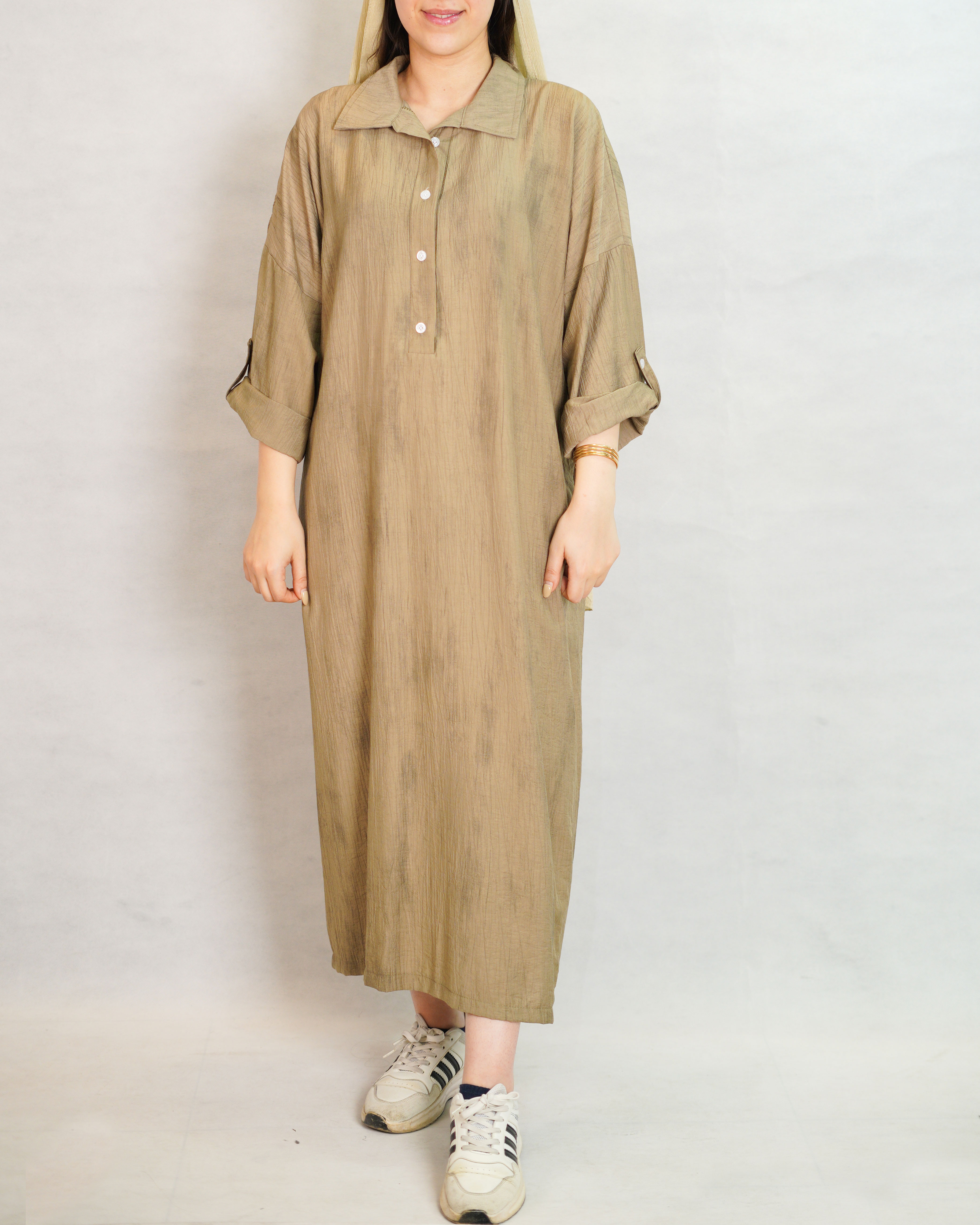 پیراهن کفتان گازوئیلی جلو دکمه کد 4394