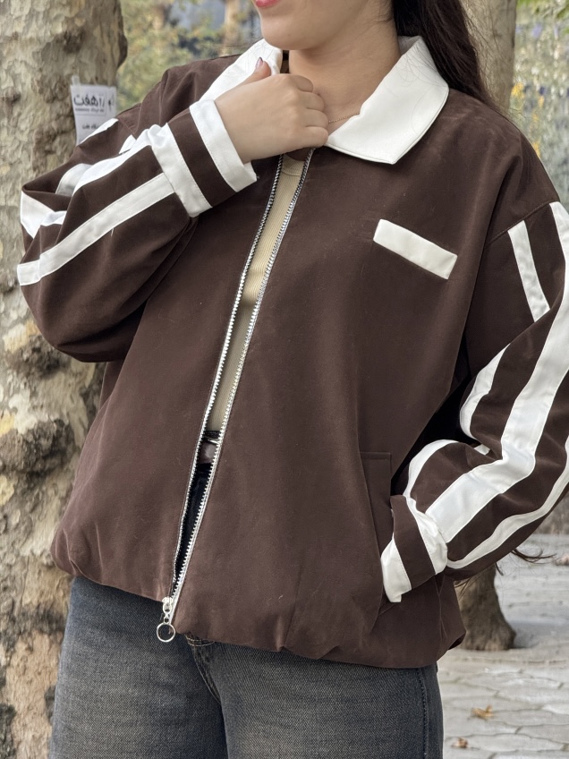 بامبر جیر چرم ترکیبی یقه شکاری کد ۴۹۳۸
