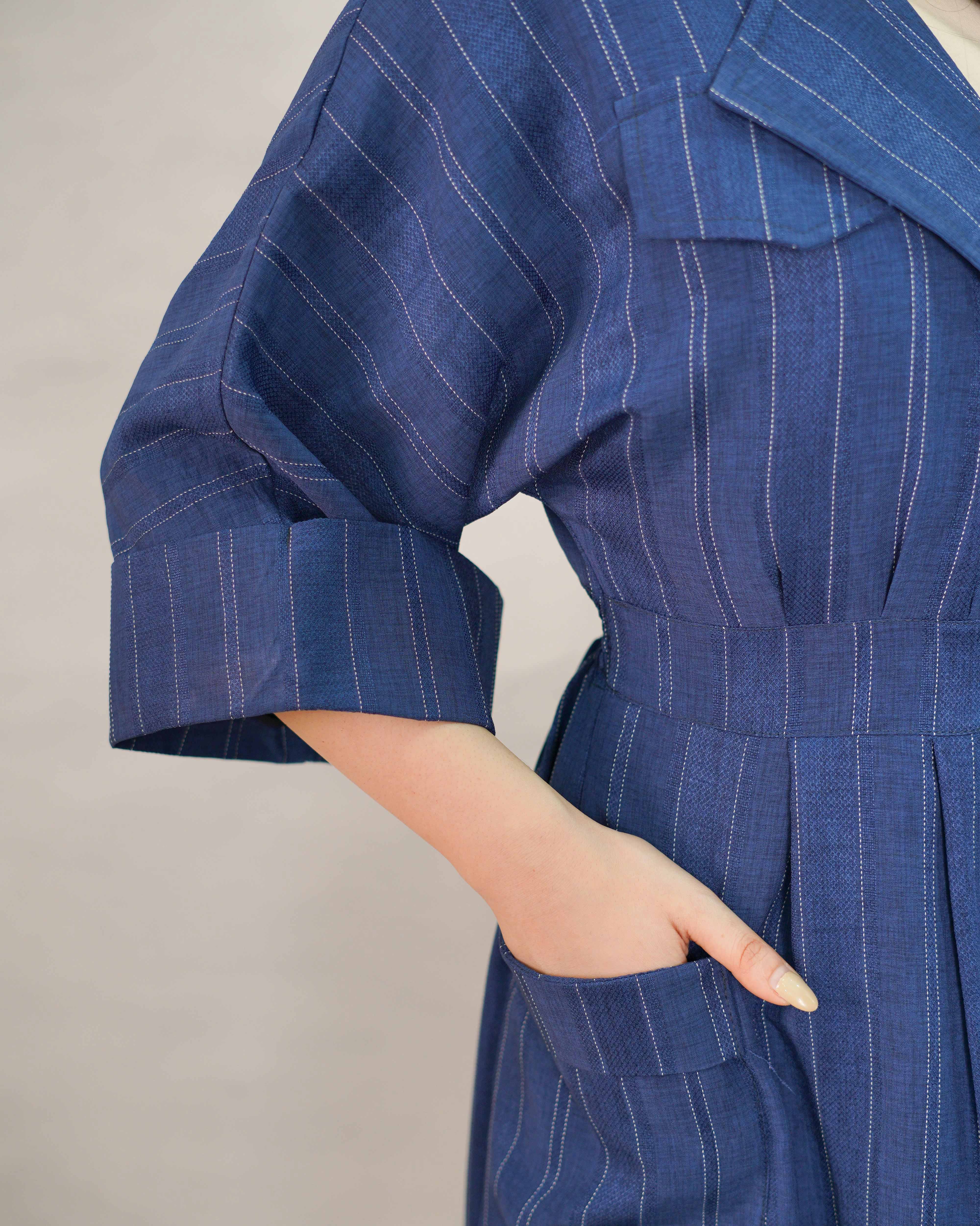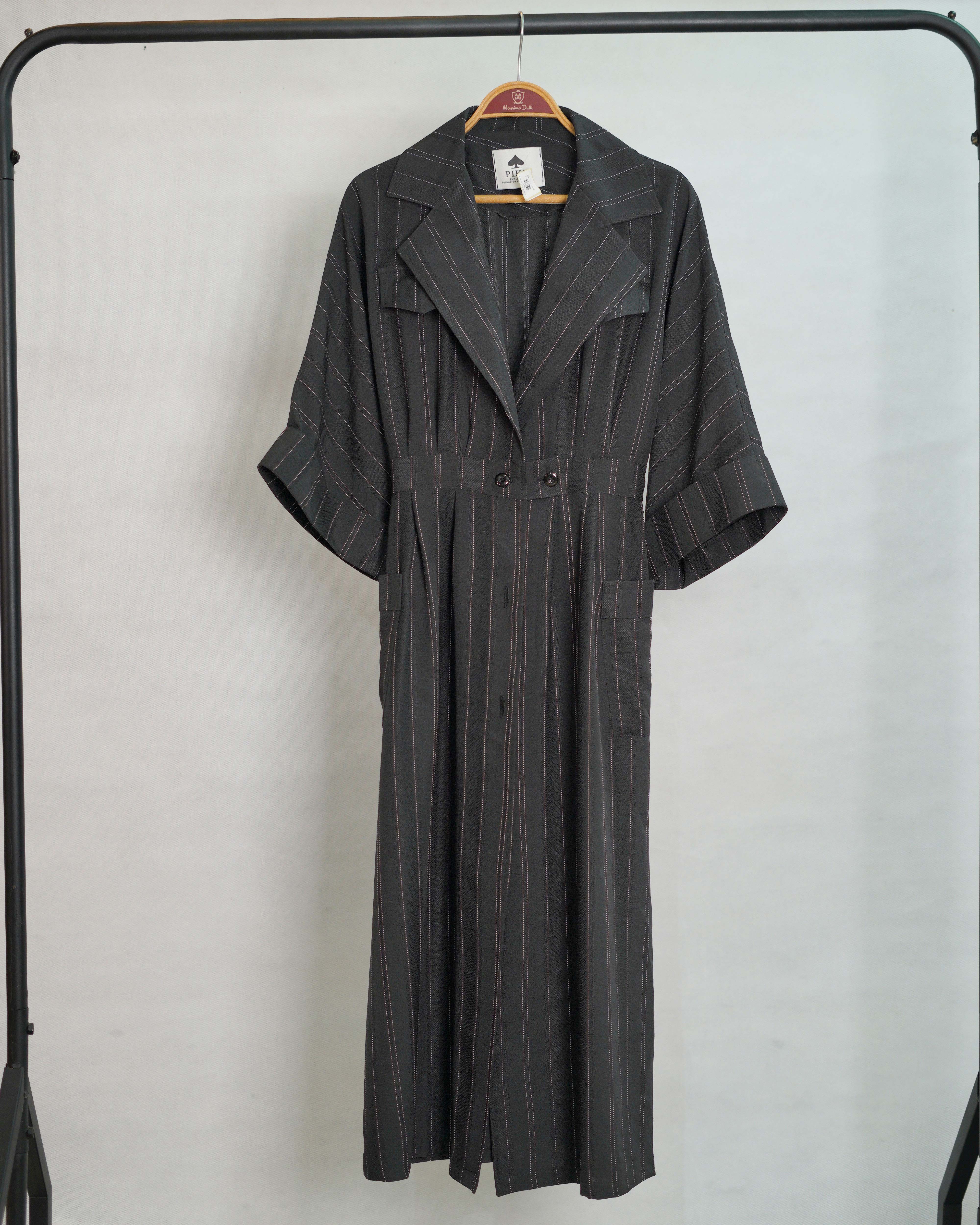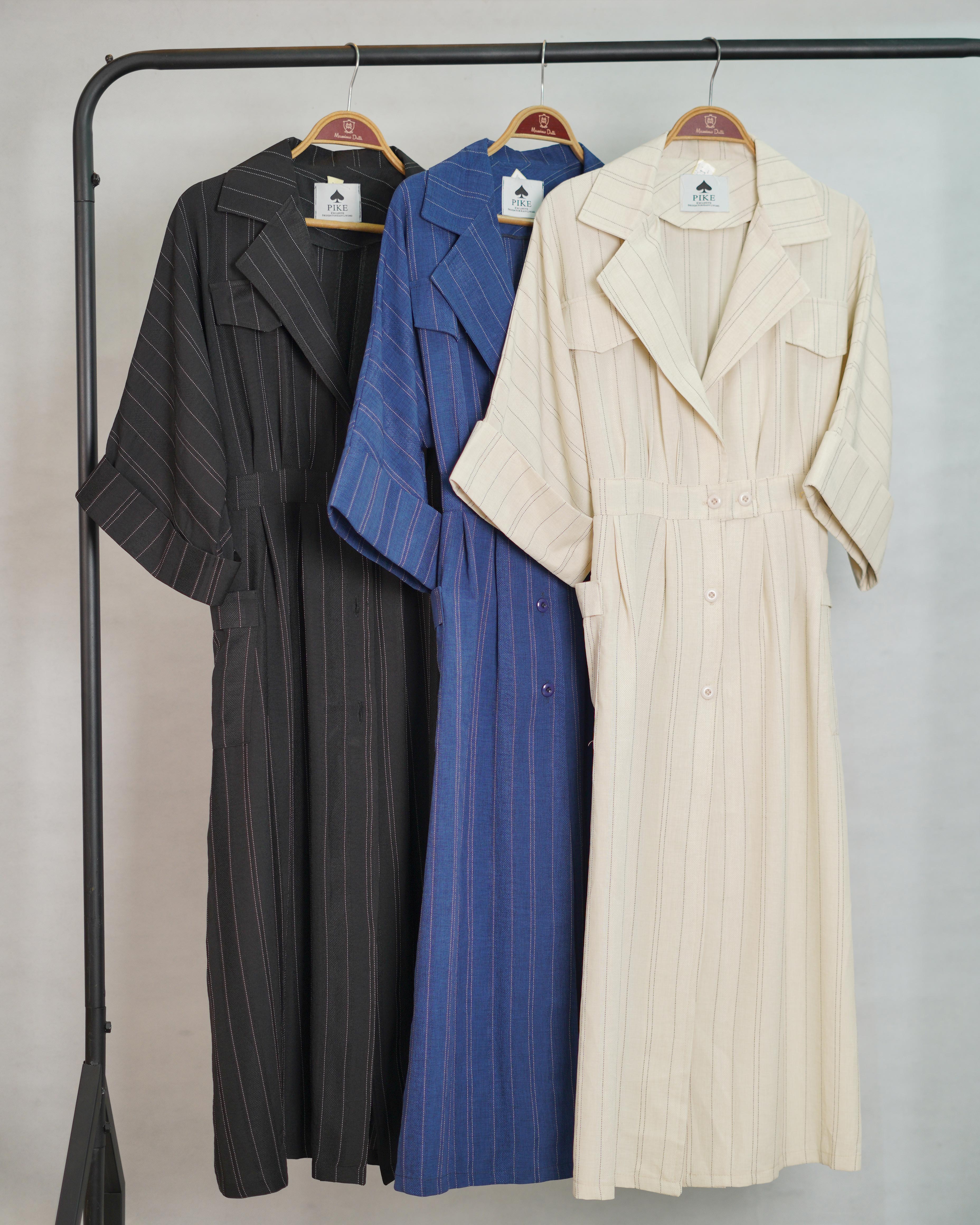 پیراهن ماکسی جلو باز راه راه کمرکش کد 4510