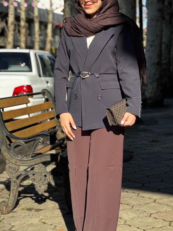 جنس این کت پرادا٫داخل کار تماما آسترکشی شده٫دکمه نما و کمربند میخوره٫سایز ۱و۲ داره و تا سایز ۴۶ میخوره